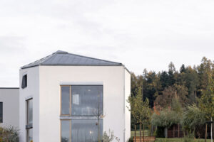 Investoři měli k dispozici malý pozemek uprostřed novodobé venkovské zástavby. Chtěli rodinný dům, který pojme všechny potřebné místnosti, přáli si ponechat i kousek zahrady. Autoři projektu to vyřešili návrhem, který je založen na vertikalitě. Půdorys vychází z topografie a výhledů do krajiny, takže má tvar nepravidelného pětiúhelníku. Dům korunuje asymetrická […]