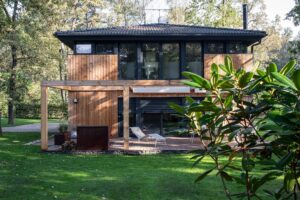 Na rozlehlý pozemek v rekreační osadě na Nymbursku, mezi urostlé duby a plot obrostlý habry, byla před lety zasazena montovaná, „nemastná neslaná“ dřevostavba. Až její nedávný facelift katapultoval katalogový domek do společnosti staveb, na které je radost pohledět a ještě lákavější v nich bydlet. Nová fasáda ze svislých borovicových prken svou přirozenou […]