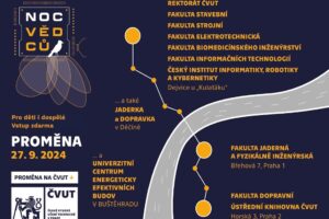 Letošní ročník celoevropské akce Noc vědců má téma „Proměna“, čímž akcentuje 100 let od úmrtí spisovatele Franze Kafky. ČVUT pro návštěvníky oblíbené události nachystalo vědecké a technické atrakce z nespočtu oborů, a to na mnoha místech v Praze, ale také v Děčíně a letos zcela poprvéi v Buštěhradu. Noc vědců se letos bude konat […]