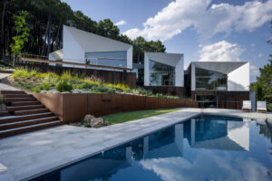 Neobvyklý rodinný dům doslova poskládal ze vzájemně propojených „boxů“ architekt José Gonzáles Gallegos v borovém lese na úpatí hory Abantos, jen hodinu jízdy na severozápad od Madridu. Členitý dům, rozdělený do několika pater, umožňuje i v suterénních místnostech kochat se exkluzivními výhledy. Hmota několika propojených budov působí kompaktněji a nedominuje krajině, protože […]