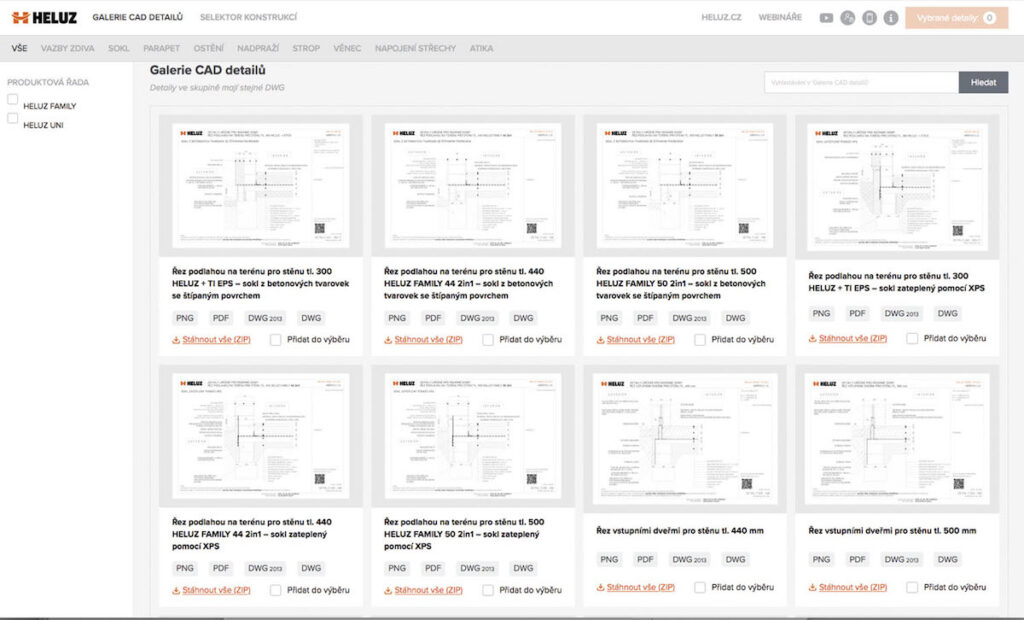 ● HELUZ Galerie CAD detailů – typové CAD detaily dostupné v různých souborových formátech