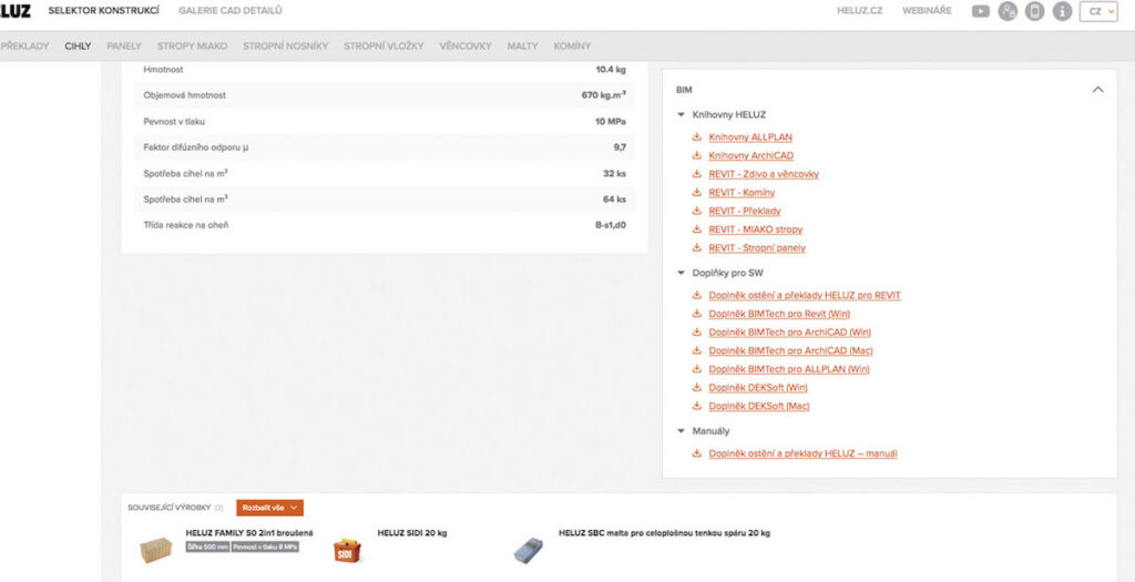 ● HELUZ Podklady pro BIM softwary – offline a online nástroje pro využití v BIM softwarech