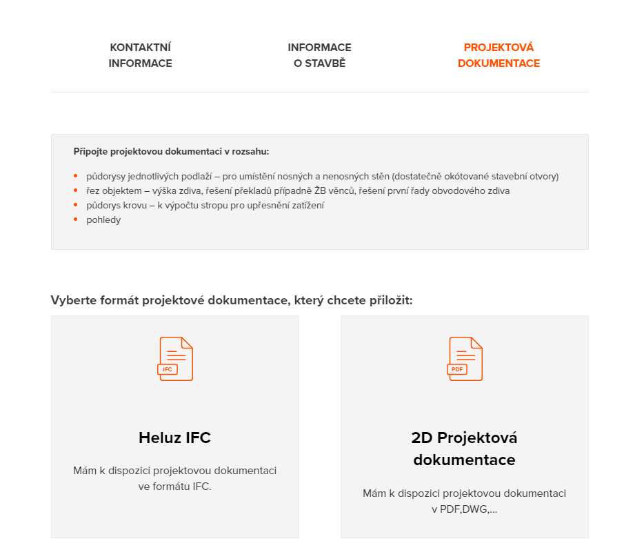 Doplněk zabezpečí správné nastavení exportu IFC a provede Vás všemi kroky odeslání projektu přímo z projekčního SW. Díky tomuto způsobu zaslání IFC dokážeme zaručit co nejpřesnější výpočet spotřeby materiálu. Dostupné pro projekční SW ArchiCAD a REVIT (mimo REVIT LT).