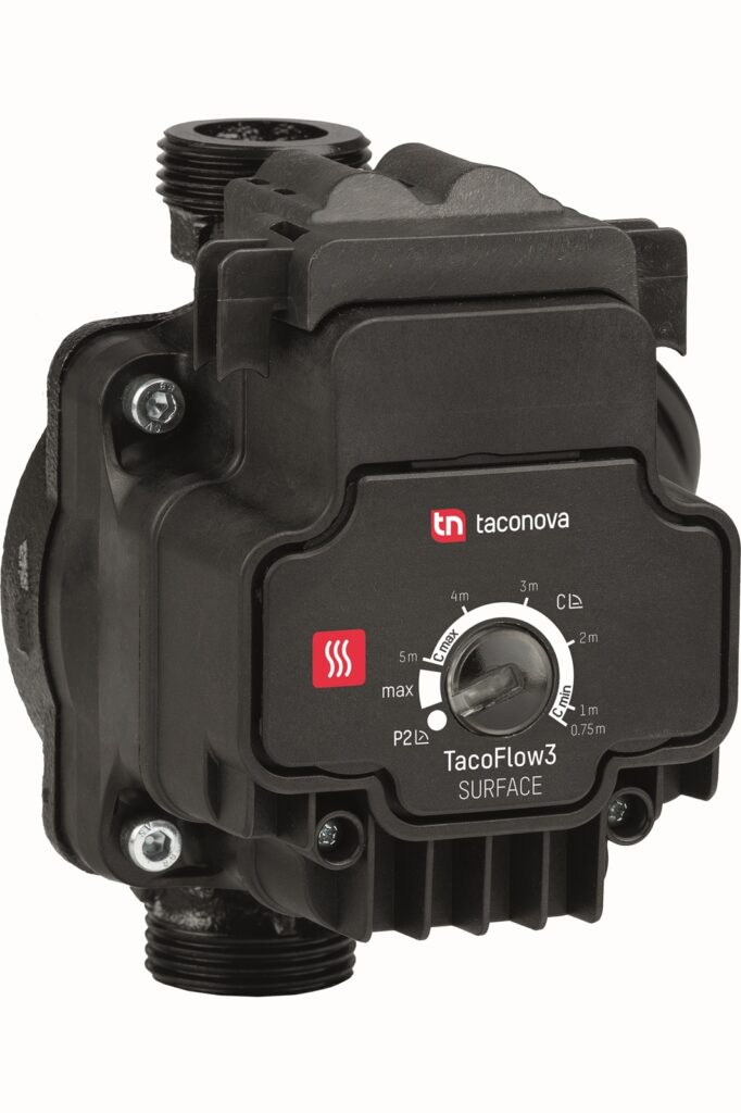 Díky třetí generaci technologie Taco a dalším inteligentním funkcím je TacoFlow3 Surface ideálním řešením pro systémy podlahového vytápění. Ve spojení s hydraulickými vyvažovacími ventily, jako je osvědčený TopMeter, zajišťuje nové oběhové čerpadlo dokonale vyvážený systém podlahového vytápění.