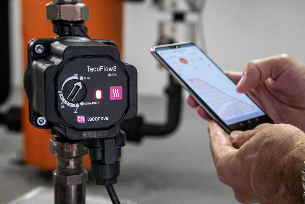 Oběhové čerpadlo TacoFlow2 eLink pro teplovodní topné systémy v obytných a komerčních budovách se vyznačuje bezdrátovou komunikací Foto: Taconova Group AG
