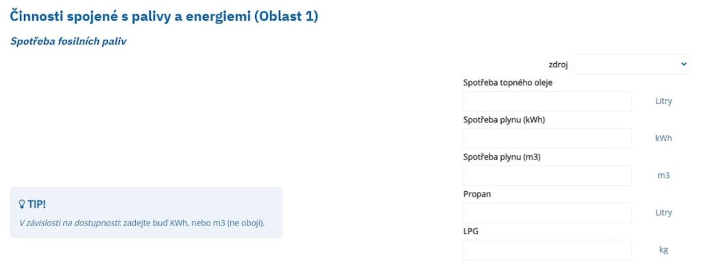 Ukázky nástroje pro výpočet uhlíkové stopy: