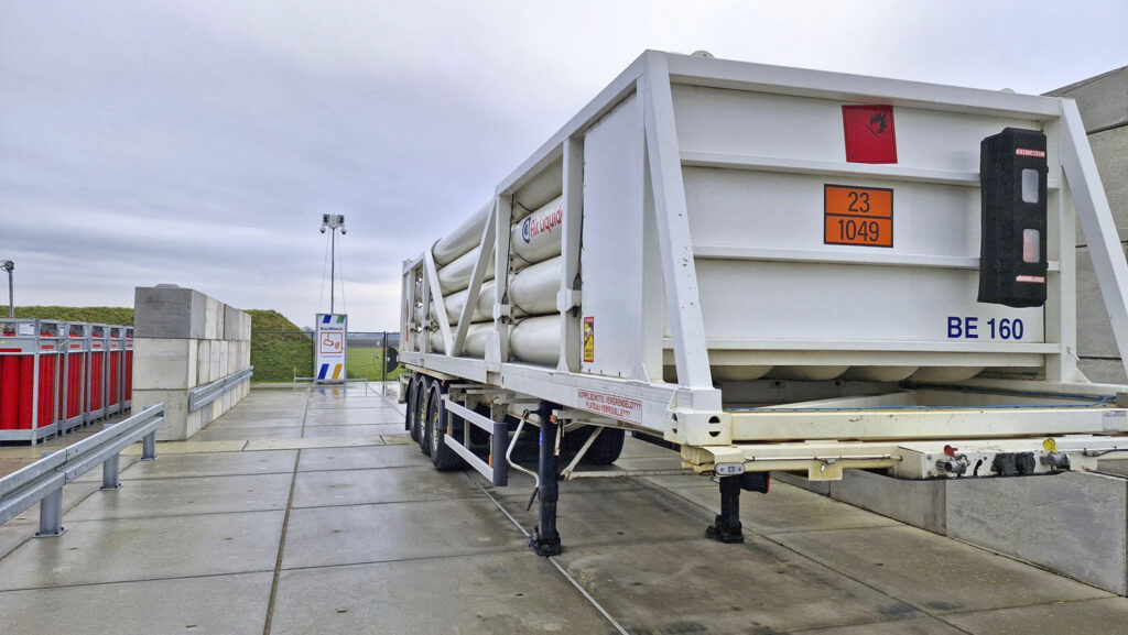 – zřejmě nejrozšířenějším způsobem je využití silniční dopravy. Vodík se přepravuje nejčastěji v plynné formě návěsy o nosnosti do 35 t nejčastěji ve formě svazku tlakových lahví a při tlaku kolem 200 barů. Tímto způsobem je možno transportovat jednorázově 300 až 500 kg vodíku;