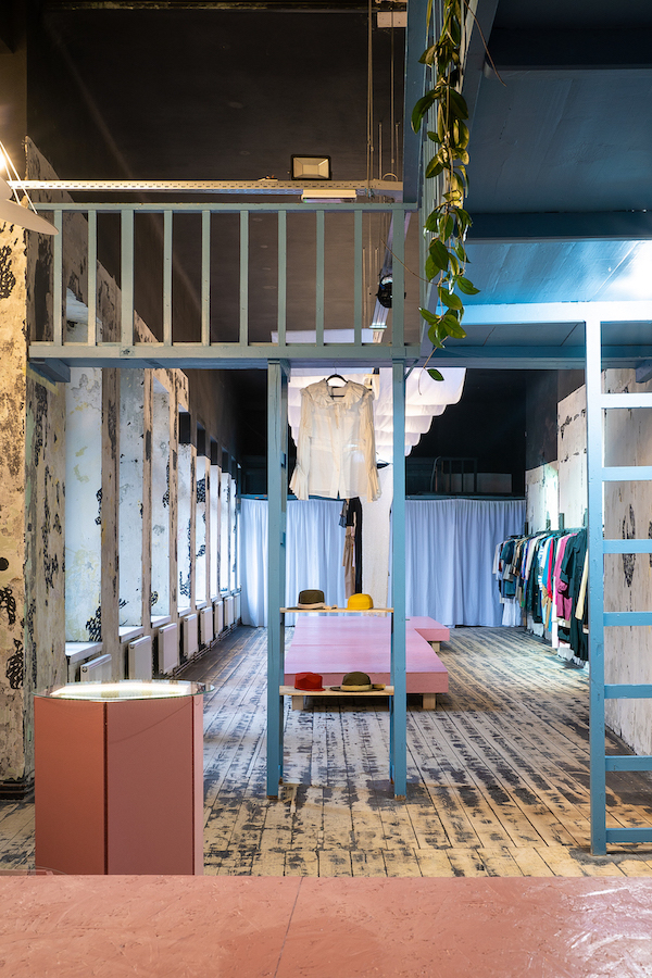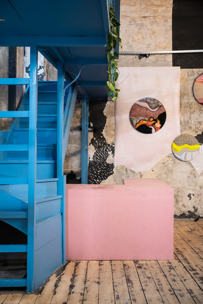 „Ateliér A8000 dlouhodobě podporuje Budějovický Majáles. Když se nám ozval kolektiv Skin On The Market, který vychází ze stejného kreativního podhoubí, neváhali jsme a rádi jsme se pustili do spolupráce. Základní inspirací pro architektonické řešení byl samotný prostor a jeho multifunkční využití. Důležitá je proto naprostá variabilita prostoru. Dá se říci, že jsme vytvořili scénu pro vše, co se zde bude v budoucnu odehrávat – výstavy, přehlídky, obchod i příběhy místní komunity. Barevností i materiály jsme navázali na minulost. Využili jsme také historické dřevěné konstrukce zábradlí, které nově slouží mimo jiné jako bar. Je to nejen udržitelné, ale i citlivé řešení,“ vysvětluje architekt Petr Jakšík z ateliéru A8000.