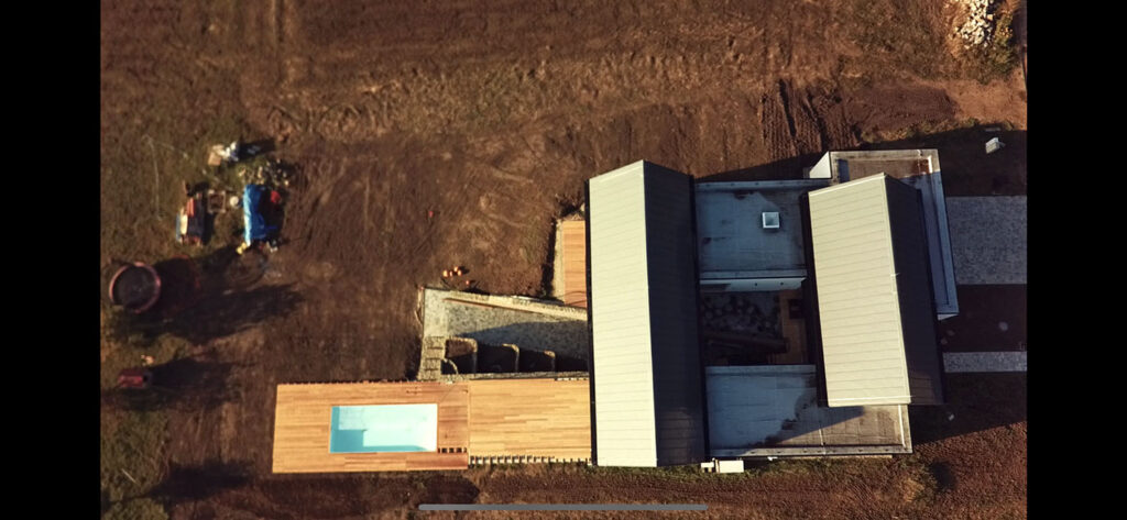 „Navrhli jsme dům, který je svým prostorovým uspořádáním současně uzavřený i otevřený. Atrium vytváří soukromý uzavřený svět, dům se ovšem otevírá i do okolí, zejména do zahrady. Svým tvarem tak reaguje na poměrně hustou budoucí zástavbu v rozvíjející se části obce,“ říká Jana Stachová z ateliéru boq architekti.
