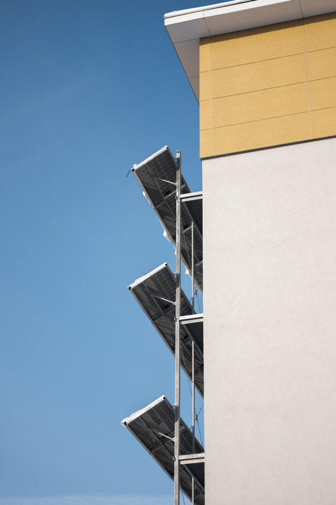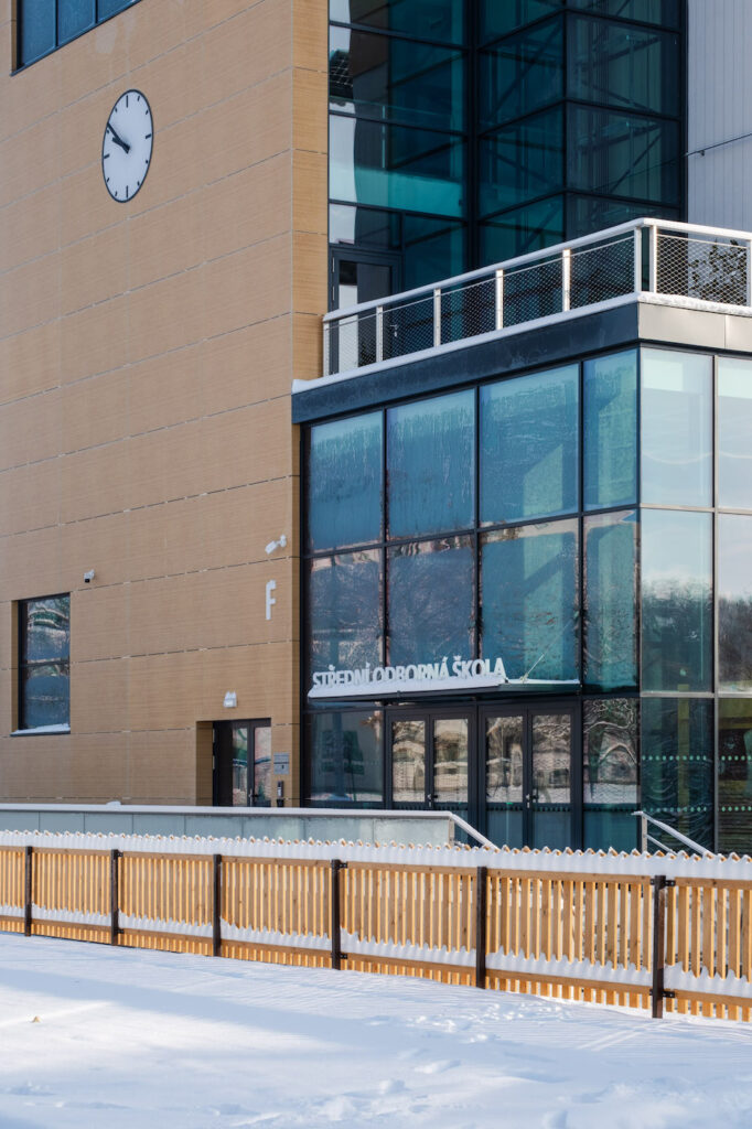 „Solární panely jsou navrženy a vyprojektovány pro výkon 62,535 kWp, z toho 38,64kWp je umístěných na střeše a 23,895kWp na stěně budovy. Nasbíraná energie pokryje chod školy a přebytek následně putuje do velkého bateriového úložiště o kapacitě 330 kWh,“ upřesnil hlavní stavbyvedoucí SYNER Jaroslav Brož.