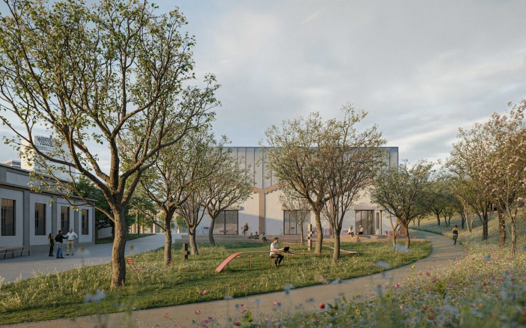 Součástí návrhu nové školy je také rekonstrukce historické budovy tiskárny a její proměna na kreativní část kampusu Arthouse.