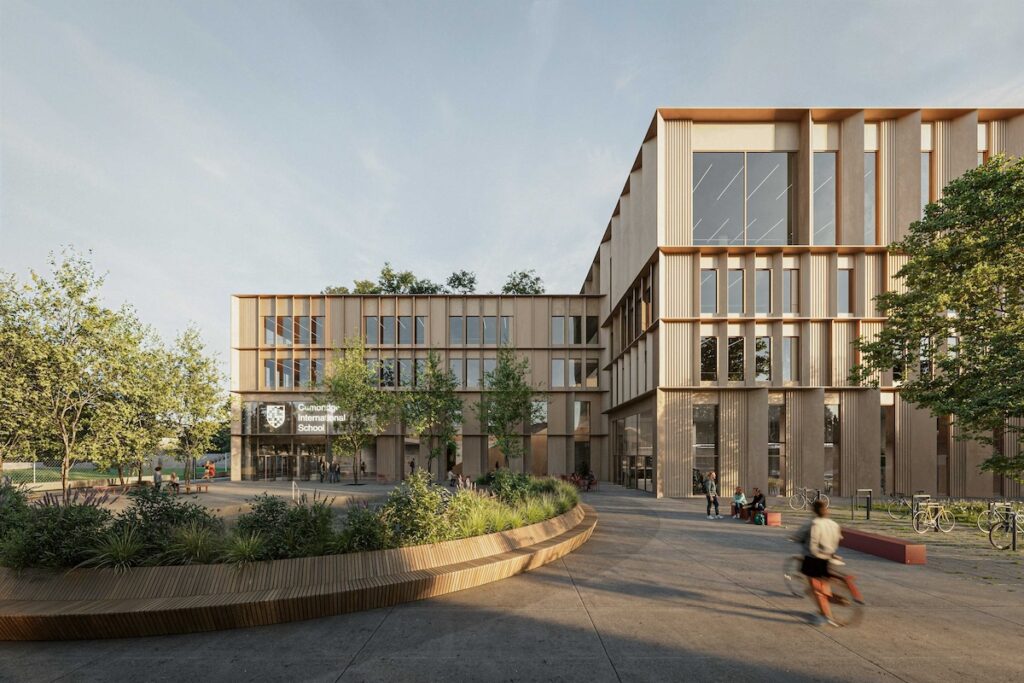Návrh Cambridge International School čerpá inspiraci z bohatých historických a urbanistických souvislostí areálu Patrónky a efektivně kombinuje moderní technologie s udržitelnou architekturou. Kampus soukromé střední školy je koncipován jako moderní vzdělávací a společenské centrum pro studenty a širokou veřejnost.