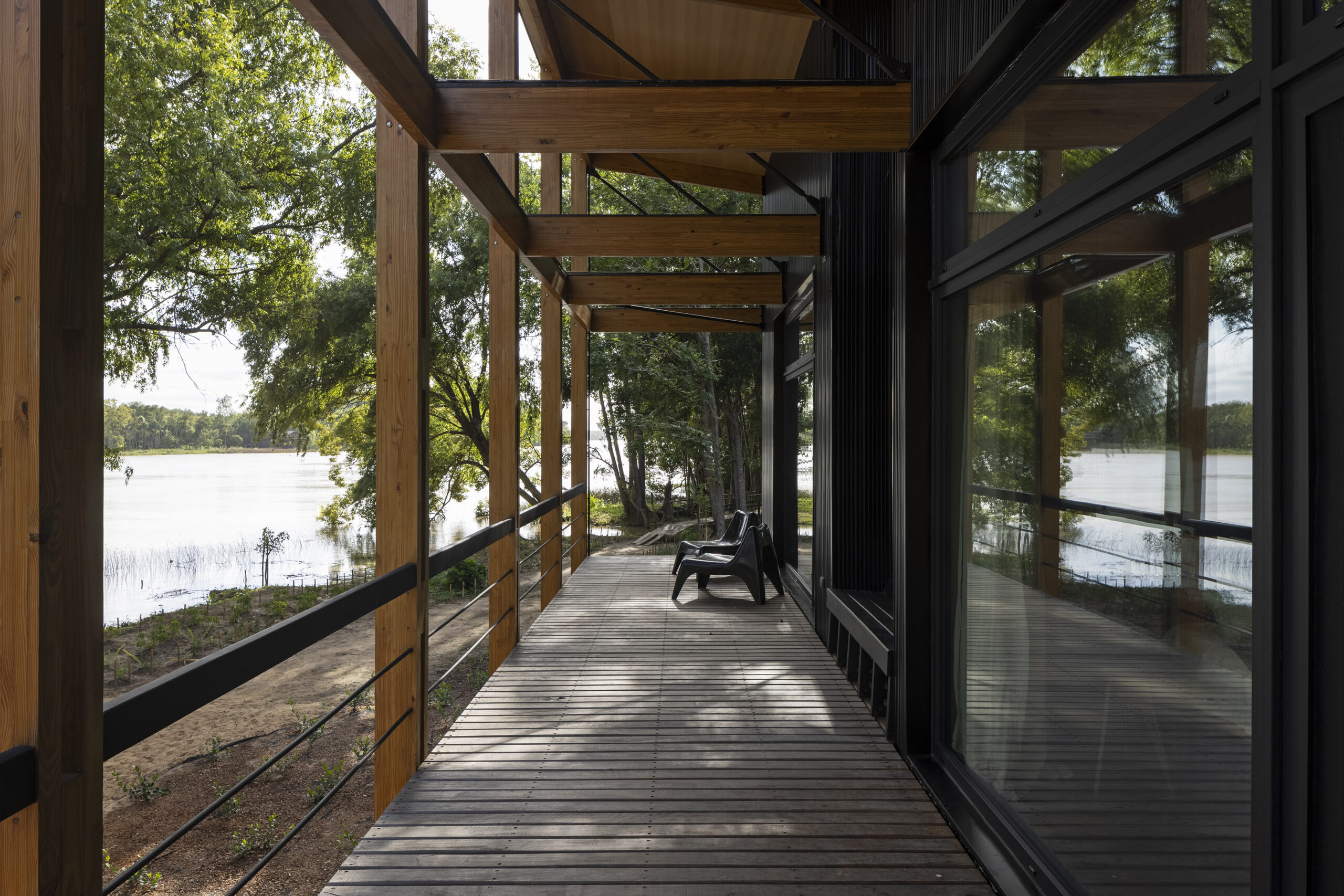 S podlahovou plochou 400 metrů čtverečních je budova poměrně rozlehlá. Přitom působí vzdušně a světle a díky své speciální konstrukci se i přizpůsobuje klimatu. Konstrukce z kůlů vytváří dojem, jako by se základní deska vznášela nad terénem. Stavba je zakryta obrovskou pultovou střechou, která stíní místnosti pod ní včetně terasy.