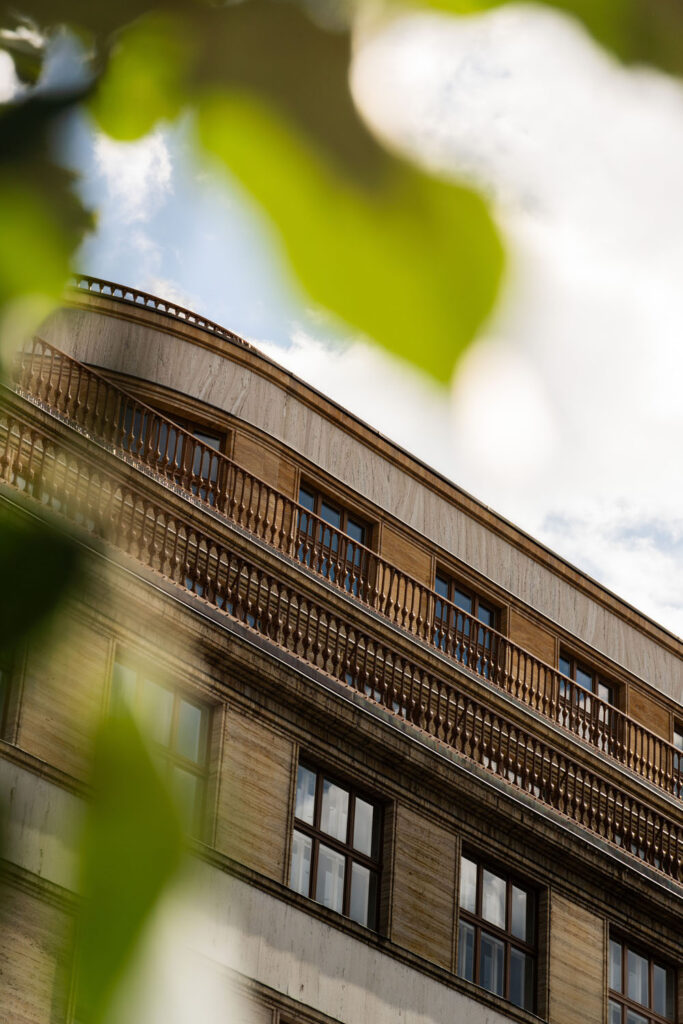 Rekonstrukce dle návrhu architektů ze studie Chapman Taylor proběhla s respektem nejen k samotné budově, ale i celé lokalitě, která se nachází na území pražské památkové rezervace zapsané na Seznamu světového kulturního dědictví UNESCO. „Travertinové fasády byly vyčištěny a doplněny, repasovala se původní špaletová okna, obnovily se luxferové podlahy a do vstupů se vrátily repliky původních lamp,“ popisuje Jana Mastíková, hlavní architektka architektonického a projekčního studia LOXIA, které se velmi často věnuje obnově a záchraně památek a v Dunaji mělo jako generální projektant na starosti pečlivou koordinaci celé rekonstrukce.