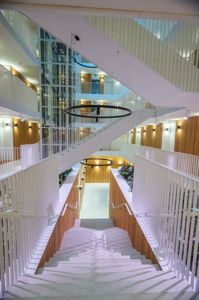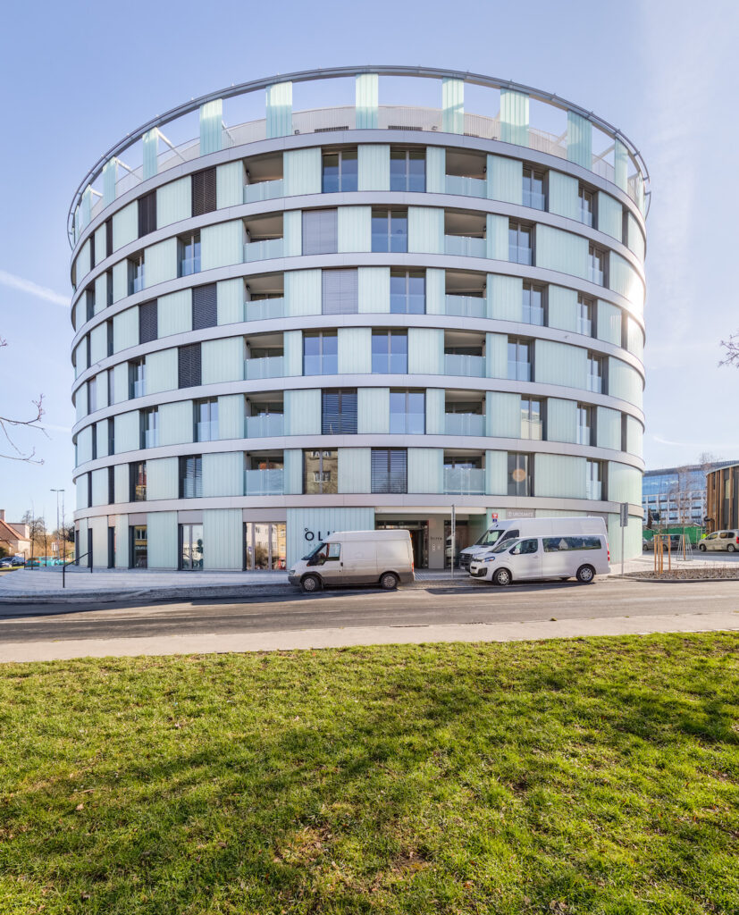 Fasáda Rezidence Olivy je tvořena z neprůhledných, avšak průsvitných skleněných panelů. V kombinaci s matným skleněným zábradlím zajišťuje uživatelům domu vysokou míru soukromí při pobytu na venkovních lodžiích a zároveň neubírá nic ze světelného komfortu v bytech, kterých je celkem 72. Dostatek světla zajišťují také velká francouzská okna, která prostorům dodávají tolik potřebnou vzdušnost. Objekt zároveň disponuje také neobvykle zpracovaným proskleným atriem s panoramatickými výtahy, které tvoří pro obyvatele domu příjemný společný a zároveň společenský prostor. Kromě zajímavého architektonického pojetí a designu, byl projekt vytvořen ve vysokém technologickém standardu využívající například centrálně řízenou rekuperaci vzduchu. Použití kvalitních materiálů a moderních technologií zajišťuje rezidentům maximální komfort, pro které je velkým benefitem také možnost napojení na chytrou domácnost.