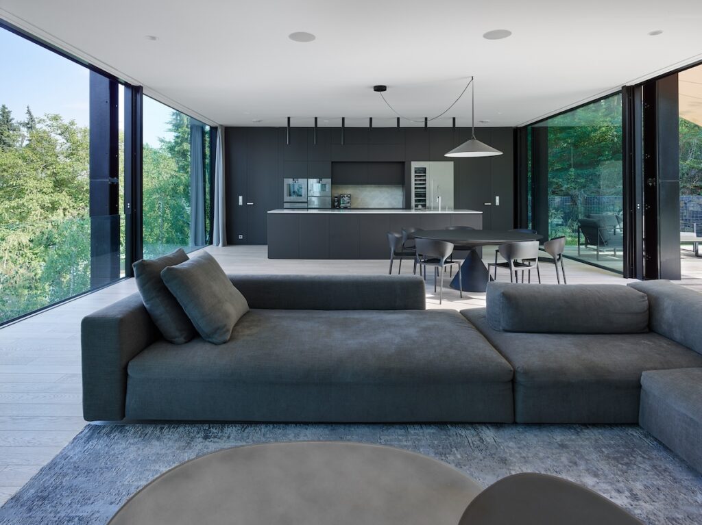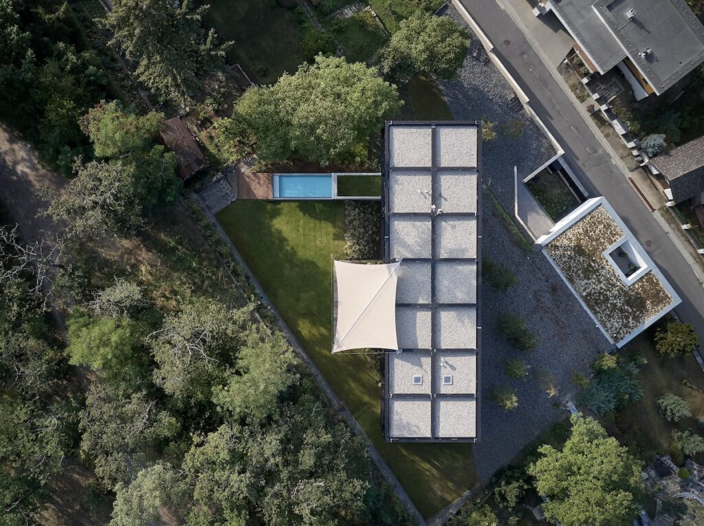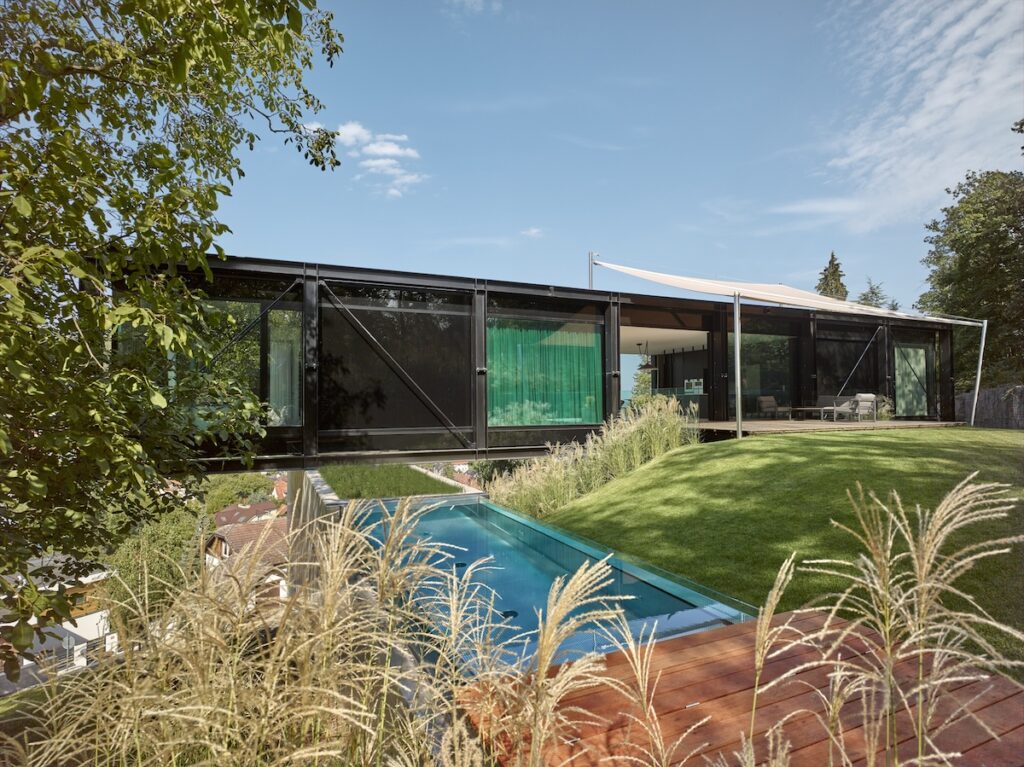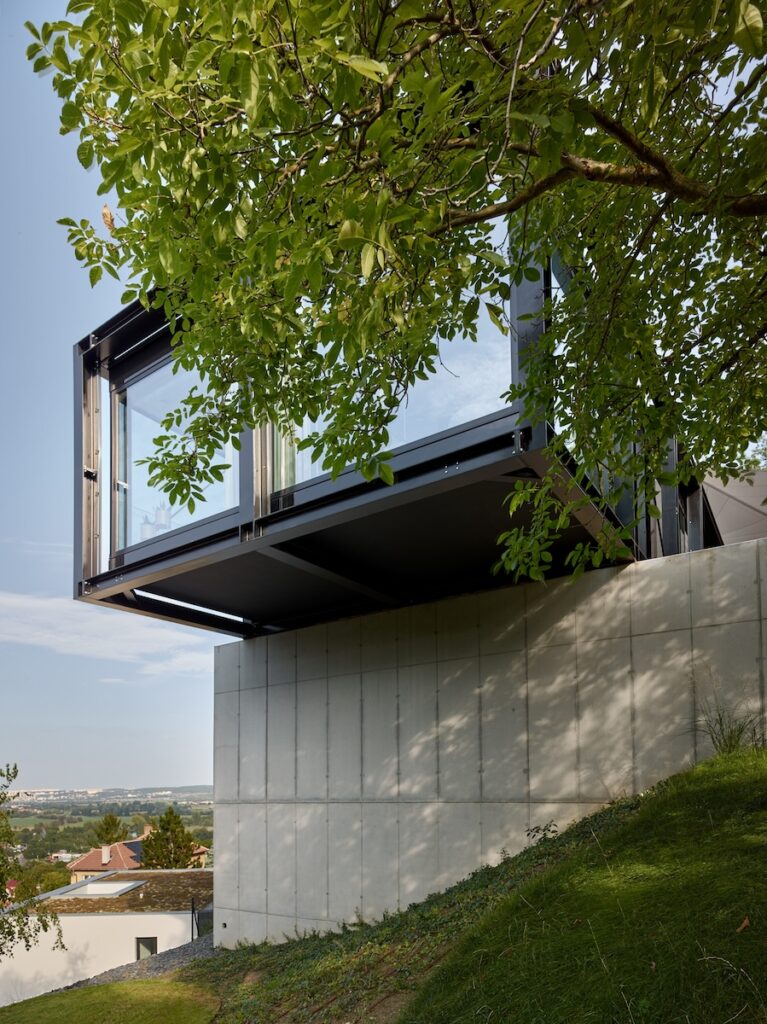 Stavební a technologický experiment Vila Sidonius připomíná ocelovou lávku, jež nad příkrým svahem v pootočené pozici směřuje k nejlepším severním výhledům a k jižnímu slunci.